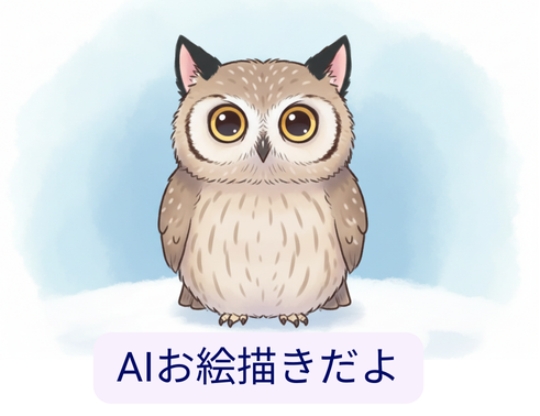 Geminiは写真からイラストへの変換も上手にやってくれます。ペットの猫や犬の写真を撮ってイラストに変換してもらうのも楽しいかも。試しに最近気に入っているフクロウを描いてもらいます。
