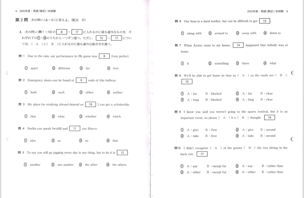旧センター試験では、発音や文法問題が出題され、長文もややお堅い抽象的な論説文で、言語学的な側面が強くありました。時間は足りるけれど、単語や文法の知識が不足していると得点が伸びにくい形式でした。またリーディングとリスニングの得点比率は4:1でした。