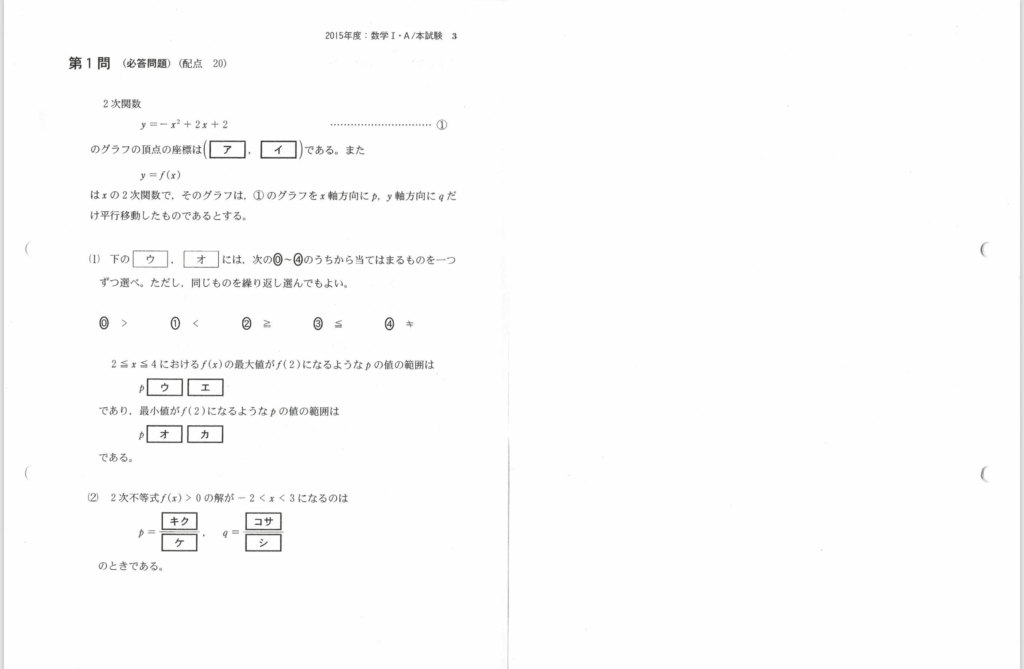 旧センター試験では、教科書や参考書の類題も多い反面、全体の計算量が多い形式でした。対策もシンプルで、定番の解法をおさえて過去問演習を繰り返すという反復練習が結果に直結してくれていました。しかし、やることはだいたいわかっていても計算でひとつミスしたらその後も連鎖して解けないという構造的な欠陥もありました。