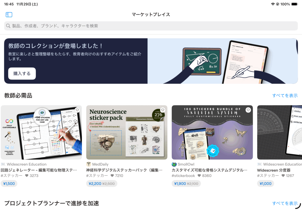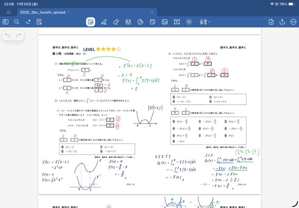 Goodnoteは基本的にはipad, ApplePencilを前提とした手書きノートアプリです。塾で私も使用していますし、おそらく多くの学校の先生も使用しているはずです。ただGoodnoteはおもに教師用だと思います。ライブで書きながら提示したい場合にはとても便利だと思いますが、これを使って講義ノートを作るなら紙のノートでいいかなって感じはします。PDFを読み込んで書き込めるのは便利ですが。